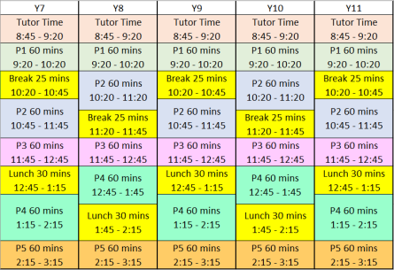- Key Stage 3 (Year 7, 8 and 9) students will enter via the side entrance.